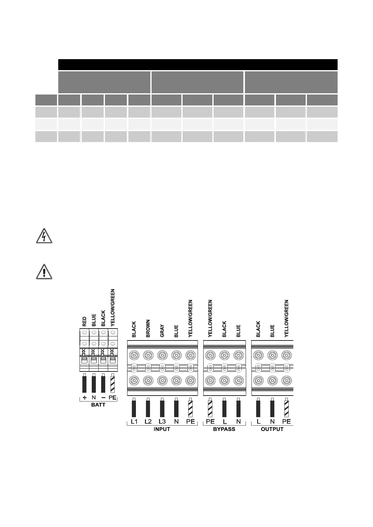 Nota: la sezione massima dei cavi che può essere inserita nelle morsettiere INPUT, BYPASS e OUTPUT è pari a