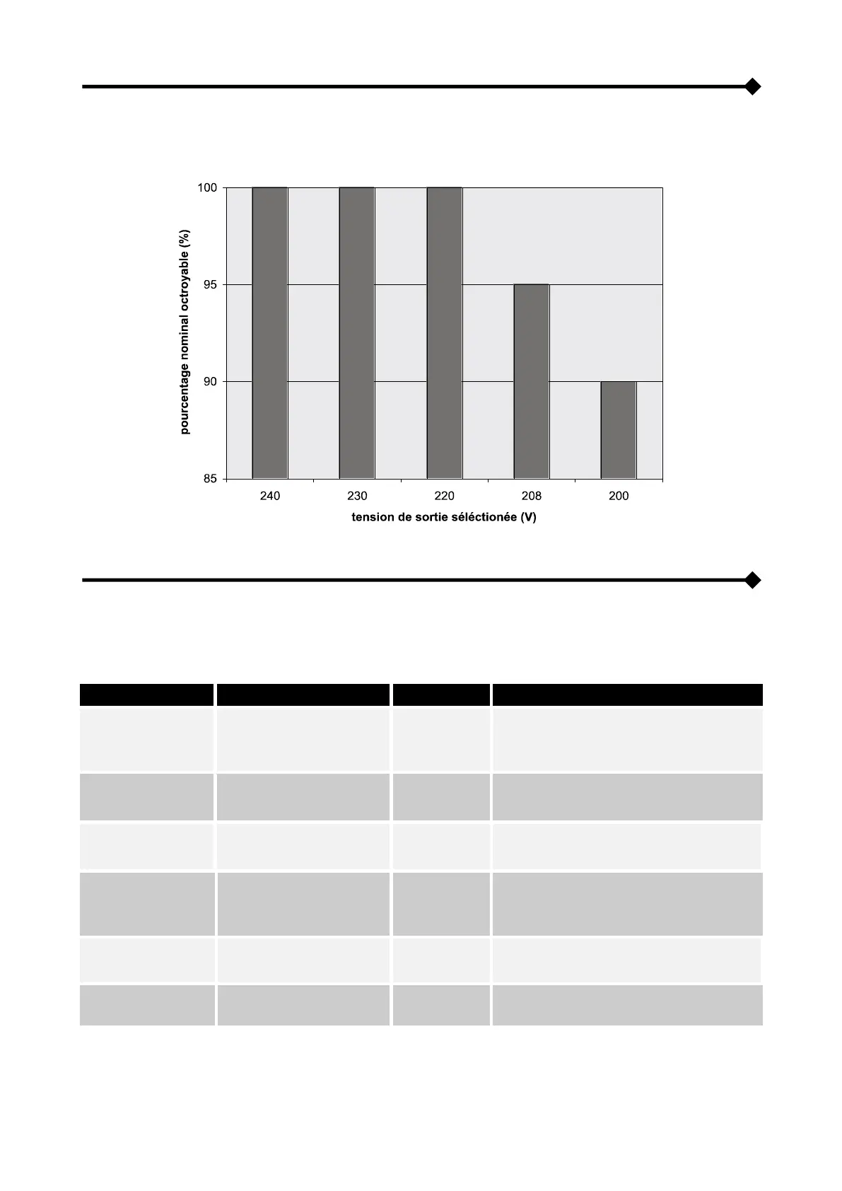 Dans le cas où la tension de sortie serait configurée à 200V et 208V (voir paragraphe “Configuration CPS”), la puissance