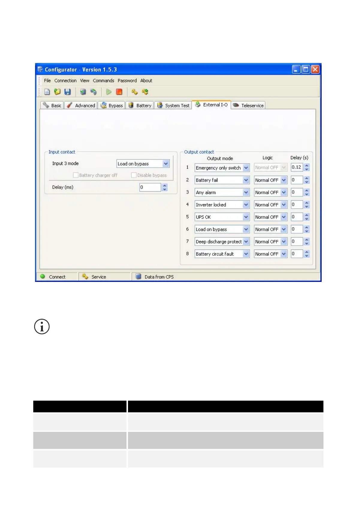 fonctionnement du relais (Logic) et un éventuel retard du signalement de l'événement (Delay, exprimé en secondes).