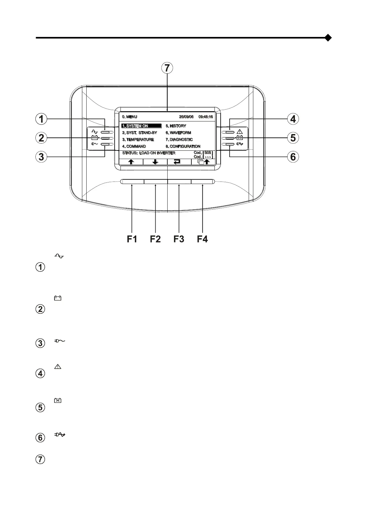 • Intermitente: funcionamiento por red con línea bypass no buena o deshabilitada y/o inversor no sincronizado