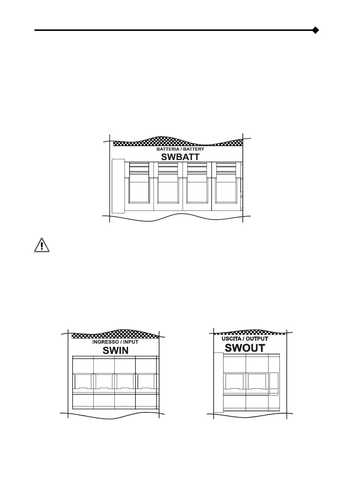 Cerrar todos los seccionadores de entrada (SWIN), de salida (SWOUT) y de by-pass separado (SWBYP); sólo