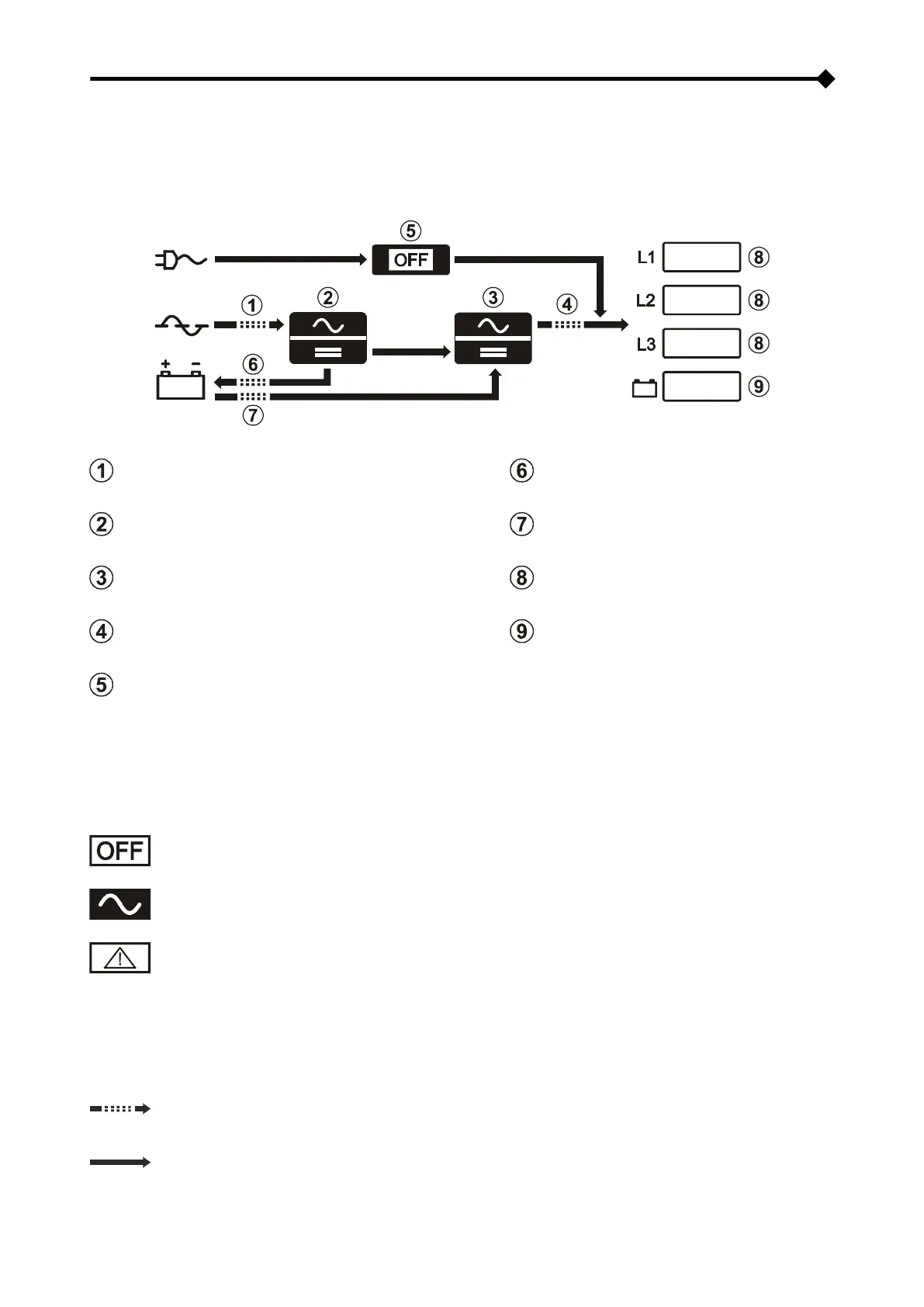 Los siguientes símbolos representan el flujo de energía desde y hacia las baterías (descarga/carga) y el estado de los