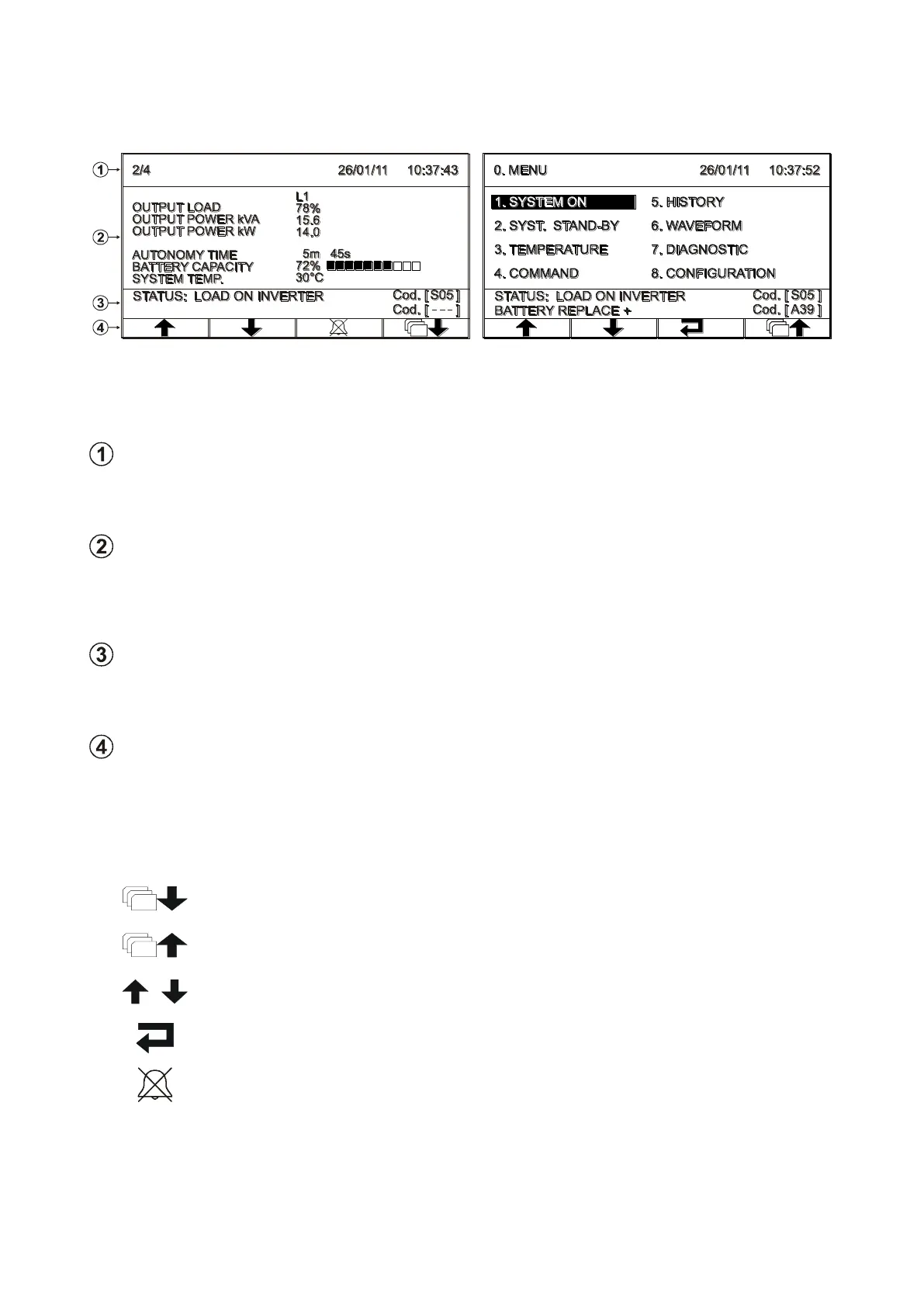 In addition, the user can switch the CPS on/Off directly from the control panel, consult network, output, battery