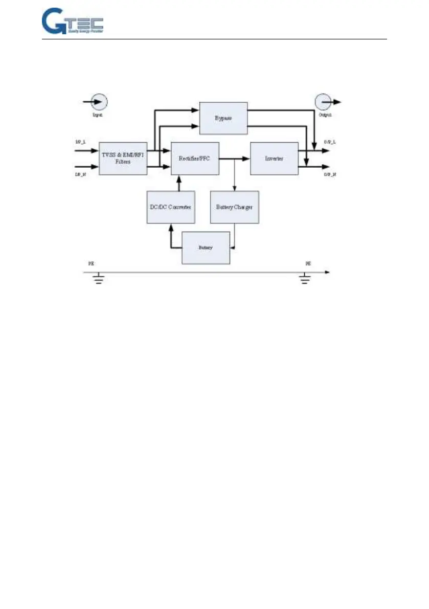 operation, the UPS inverter is on-line and continuously generating clean, precise, regulated AC