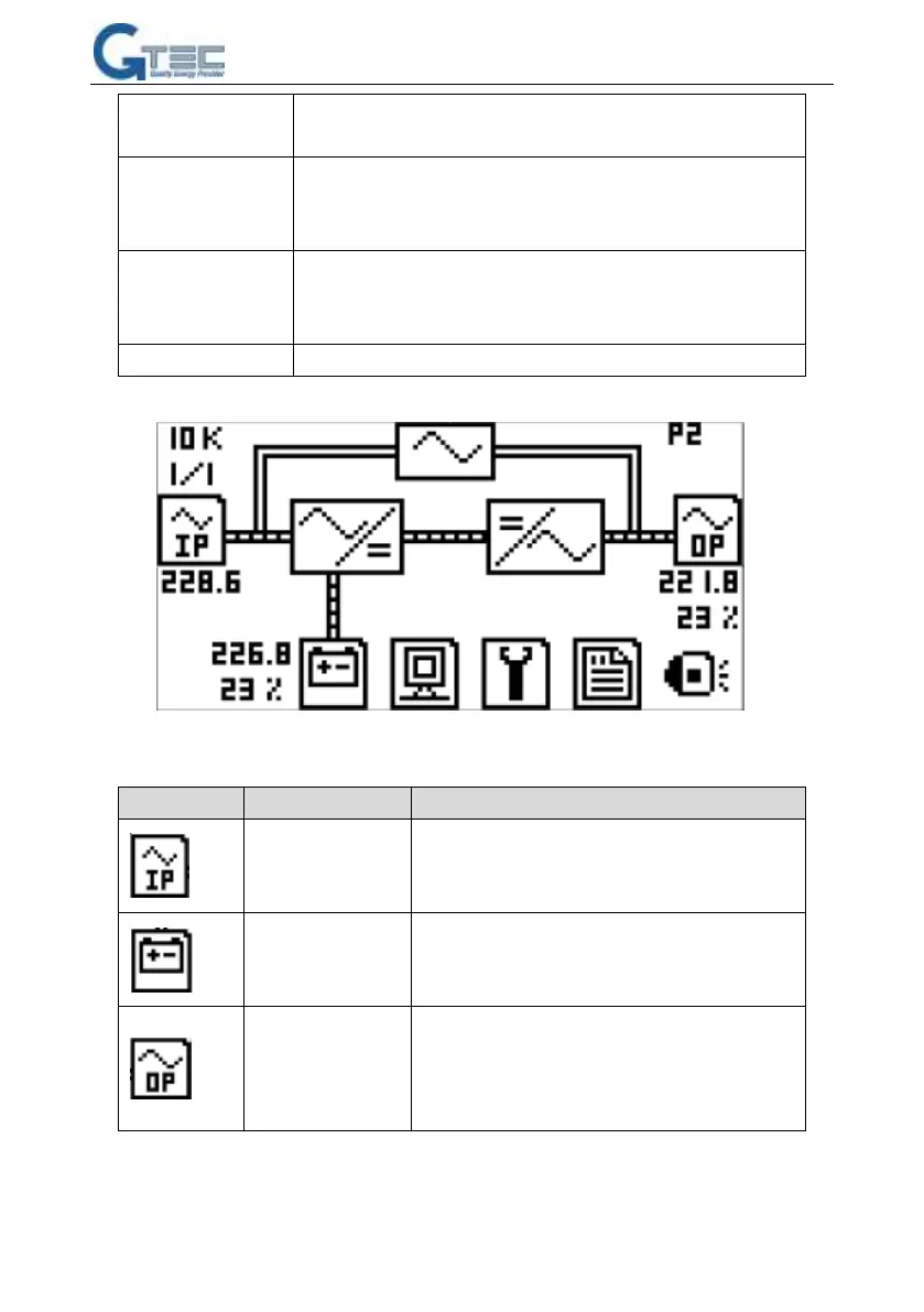 Bypass indicator: green—bypass is normal, dark—UPS is in