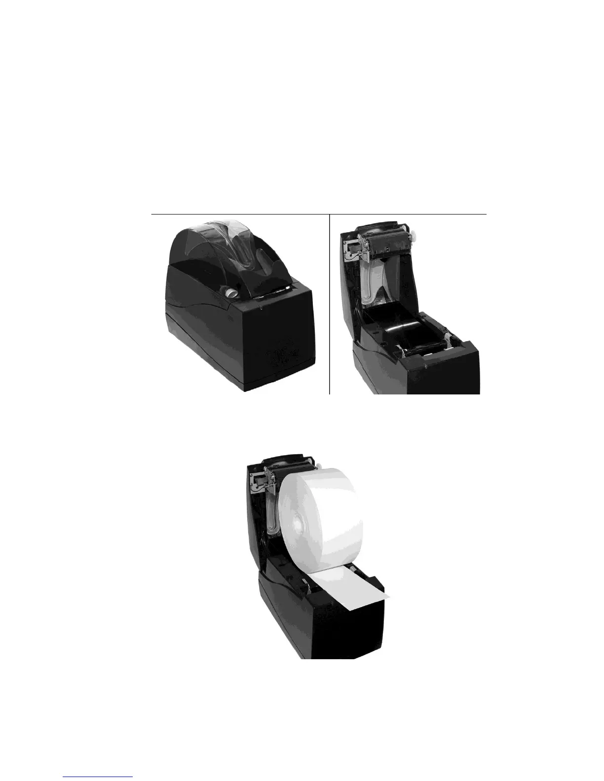 2. Tear off the first layer of the paper roll. Place the paper roll into the printer, so