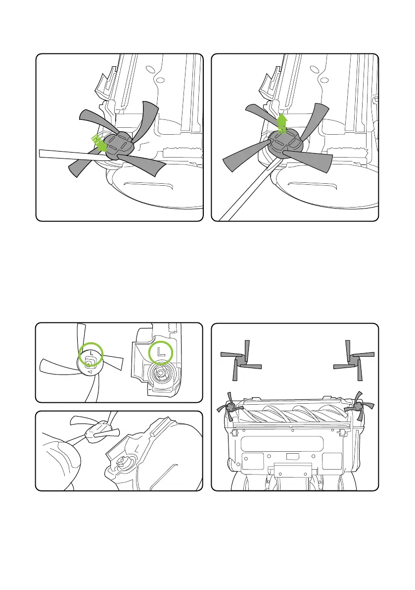 The edge brushes are handed and note to match the “L “and “R” markings on the brush and