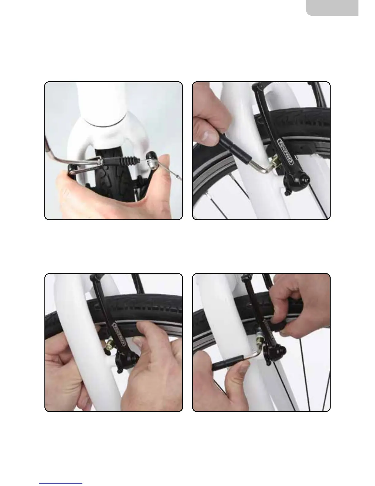 The brake pads should be aligned accurately against the wheel rim. Check both the left and right