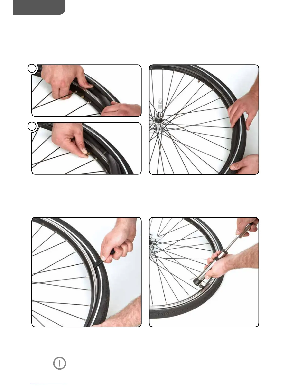 1. Insert inner tube into the tyre at the valve