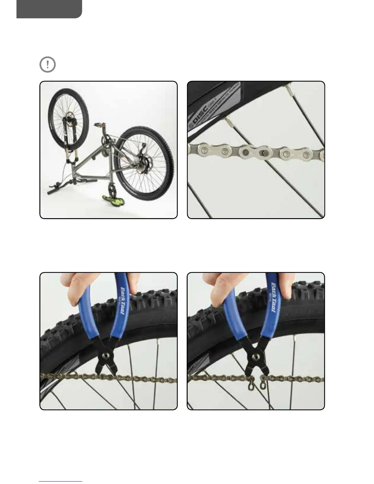 Insert the master link pliers into the master link. Squeeze in the handles. This will detach the