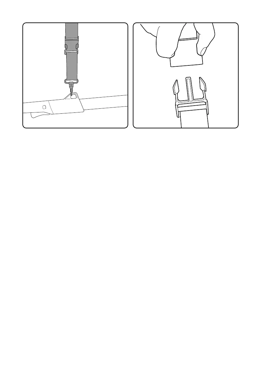 Abroche la hebilla al bucle del mango y fije el arnés