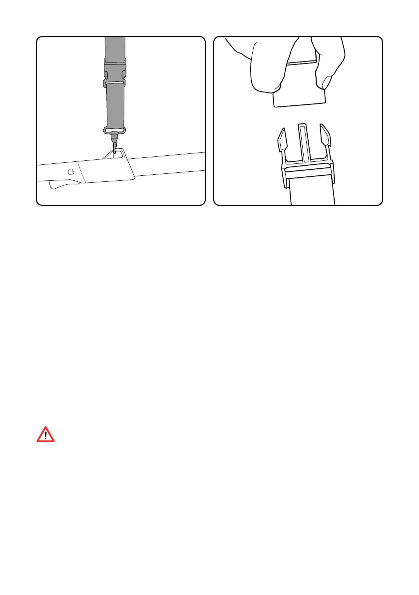 Abroche la hebilla al bucle del mango y fije el arnés
