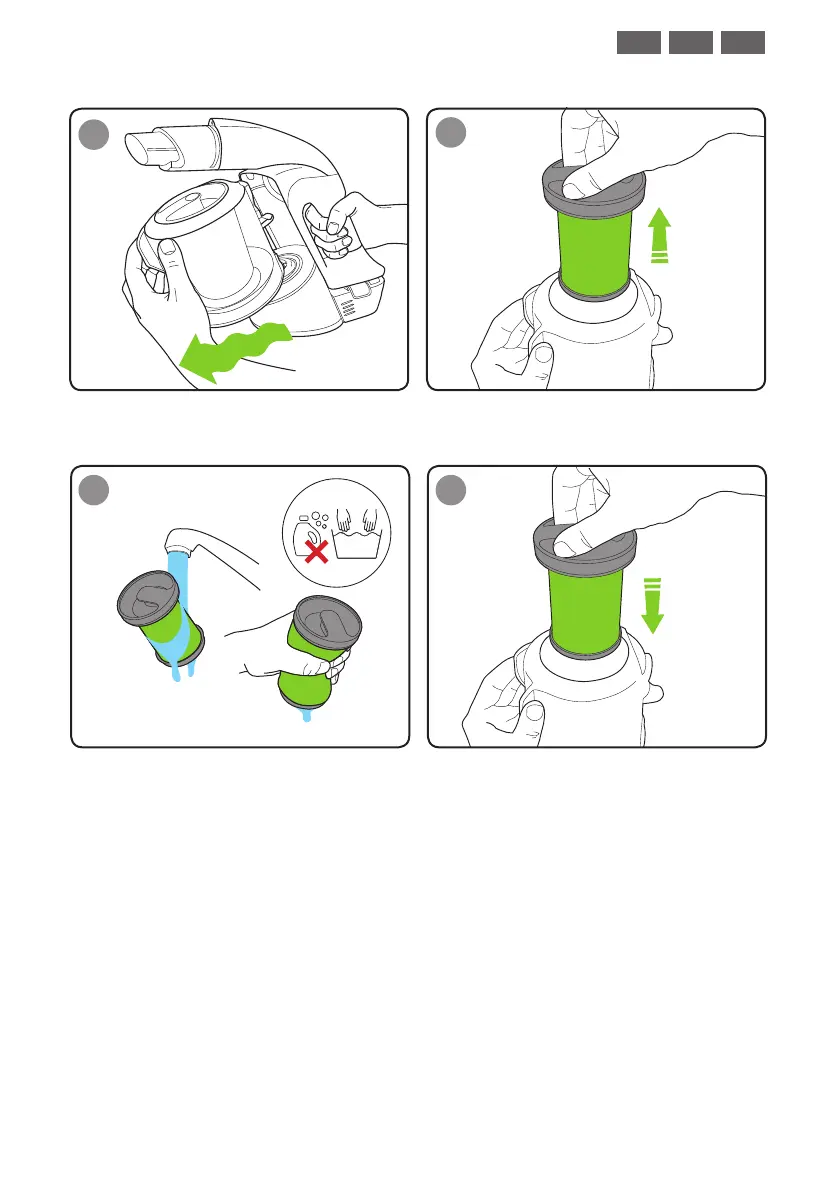 Rengjøring av lteret / Rengöring av lter / Suodattimen puhdistus