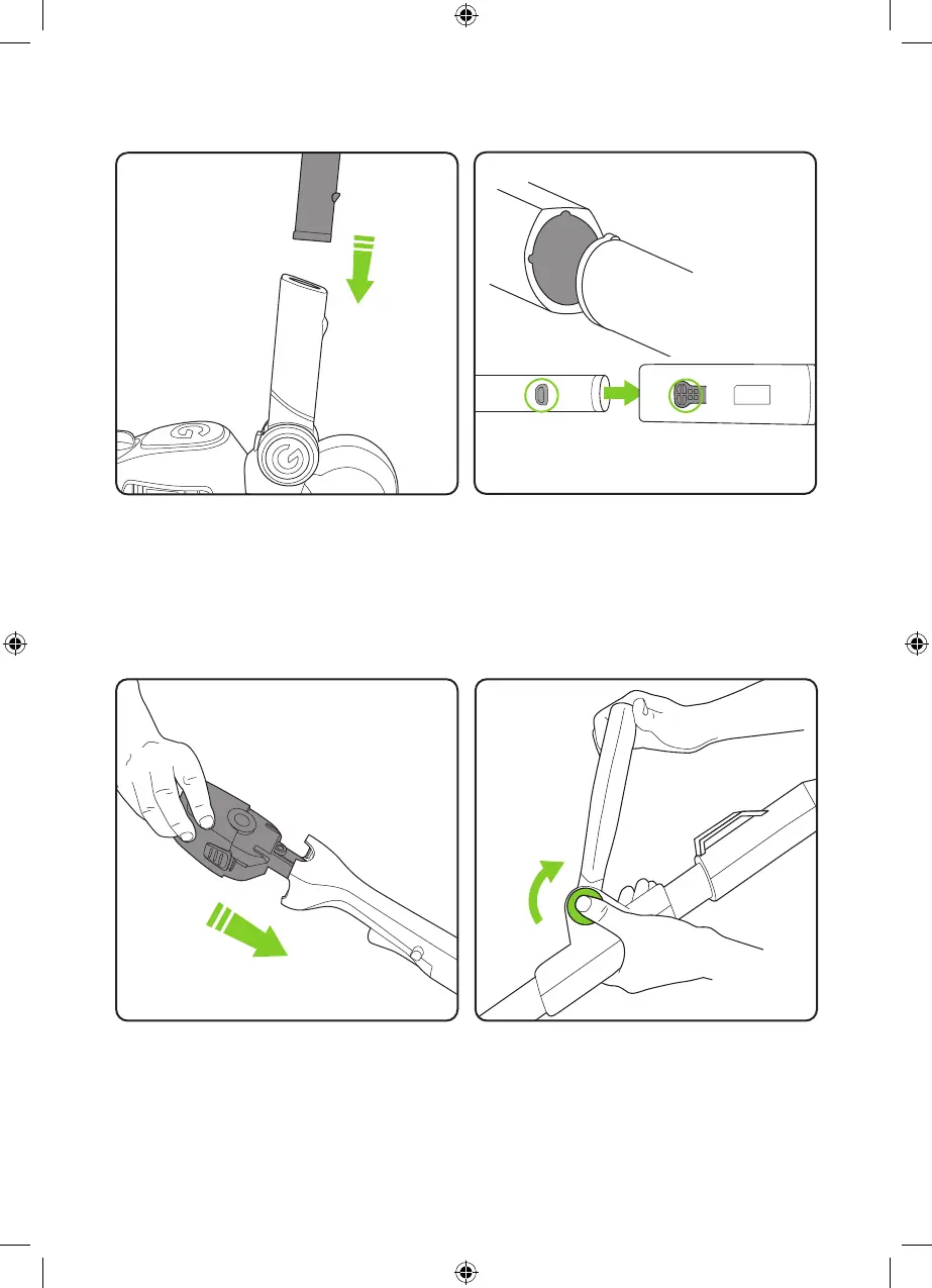 Push the green button to adjust the handle to