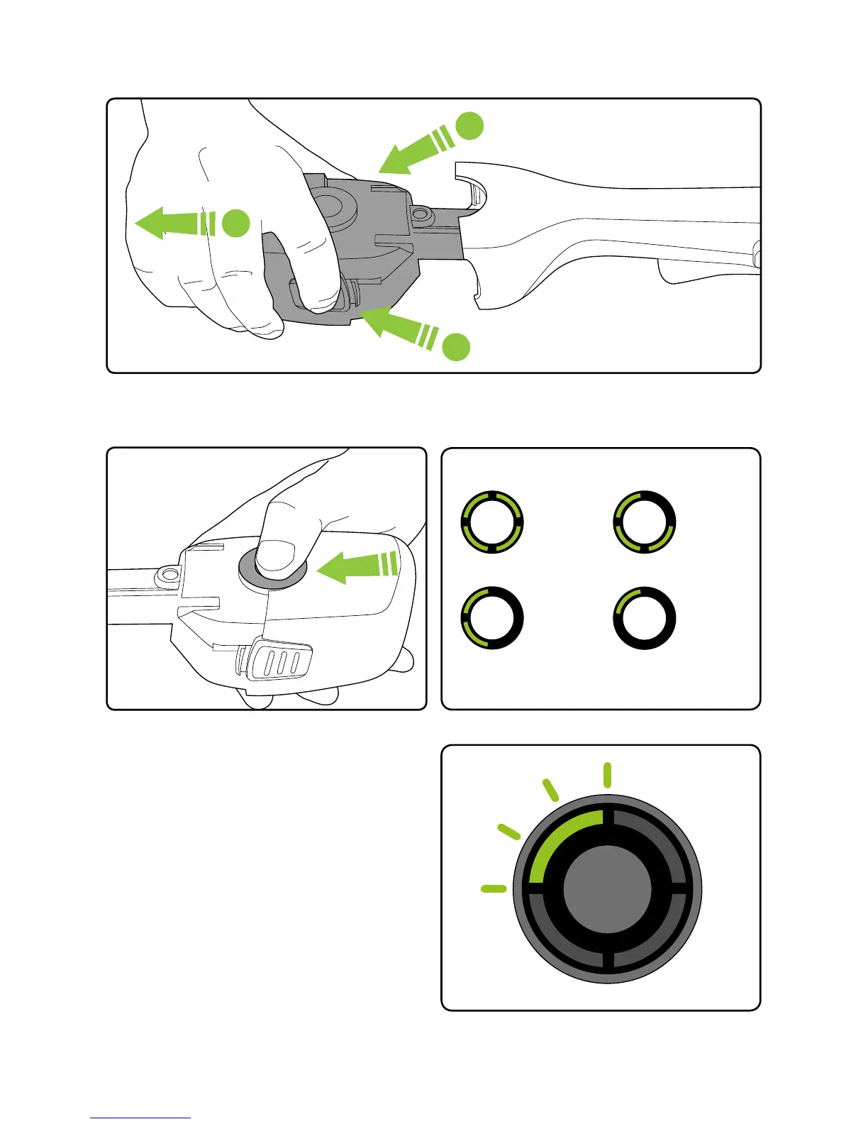 The number of lit LEDs shows the charge.