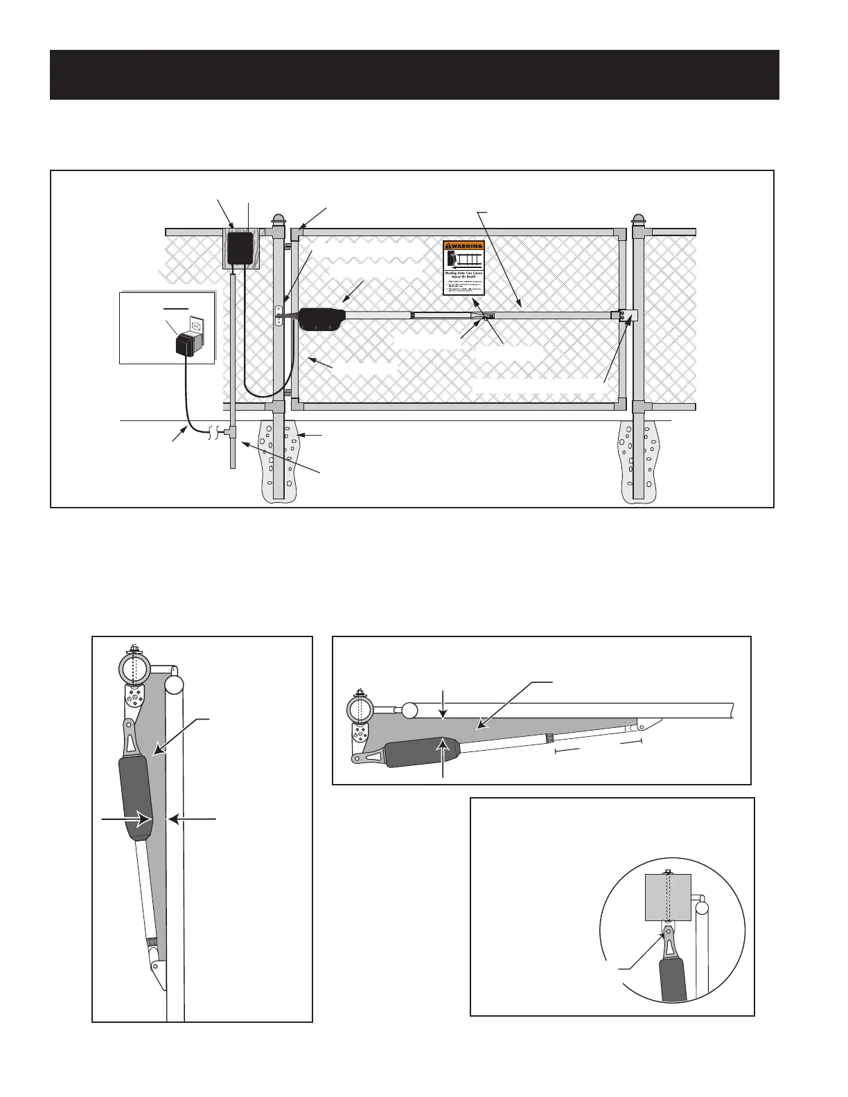 open and closed positions. Be sure the position of the gate opener and brackets allows for 2" of clearance
