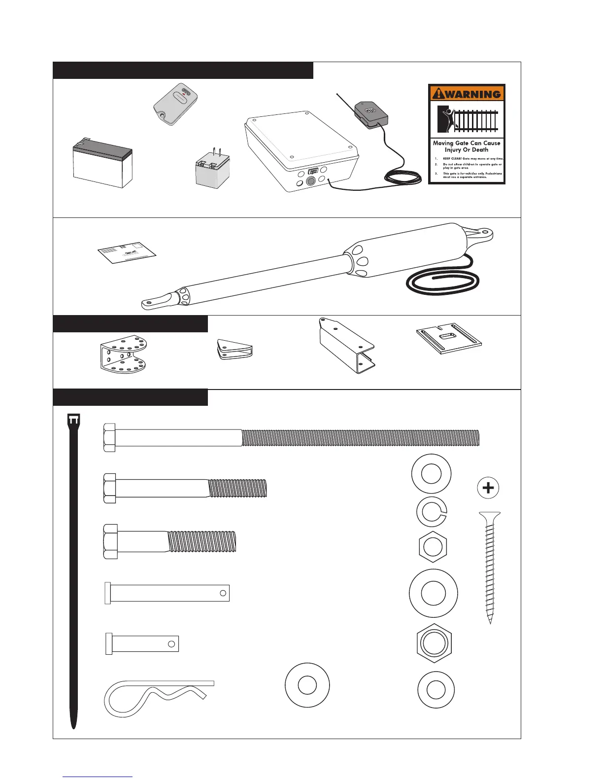 GTO 3000XLS - 3000 XLS Master Operator Parts; Control Box & Electrical Components; Bracket Box HB301 Components; Hardware Bag H301 P Contents