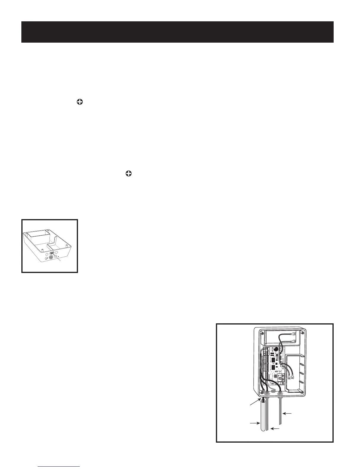 opening on the lower left of the control box. Pull 6” to 8” of wire