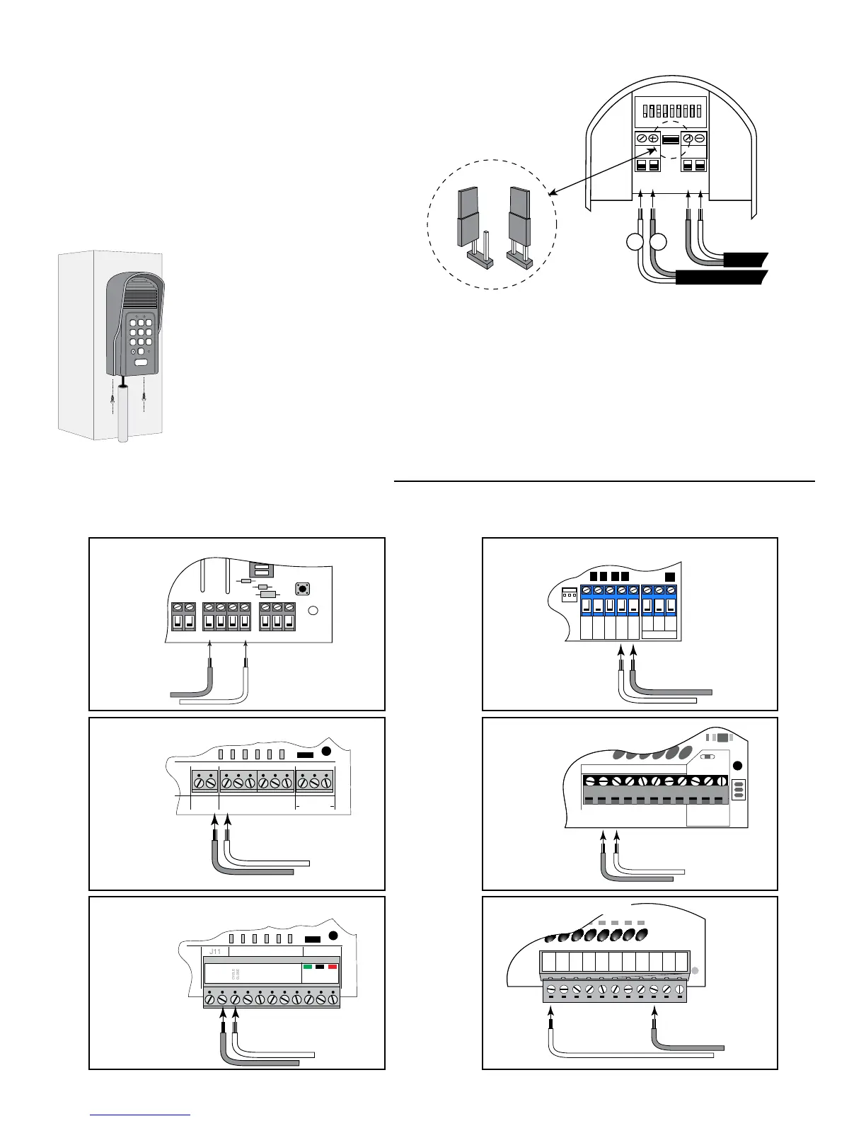 Step 5: Attach the wires from the keypad to the opener control board terminal blocks as shown below.
