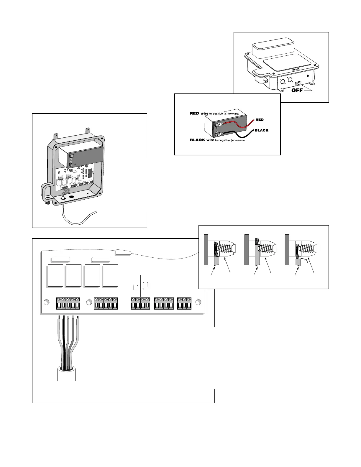 black wire to (-) terminal. Pay careful attention to the color of the wire (not