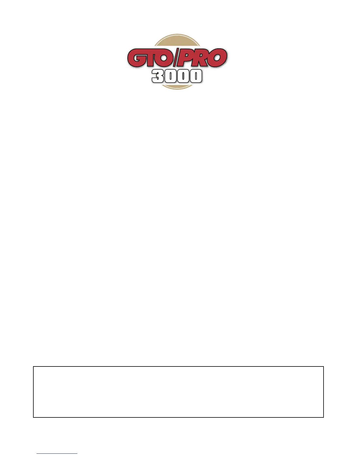 Thank you for purchasing a GTO/PRO® 3000 When correctly installed and properly used, your GTO/PRO® 3000