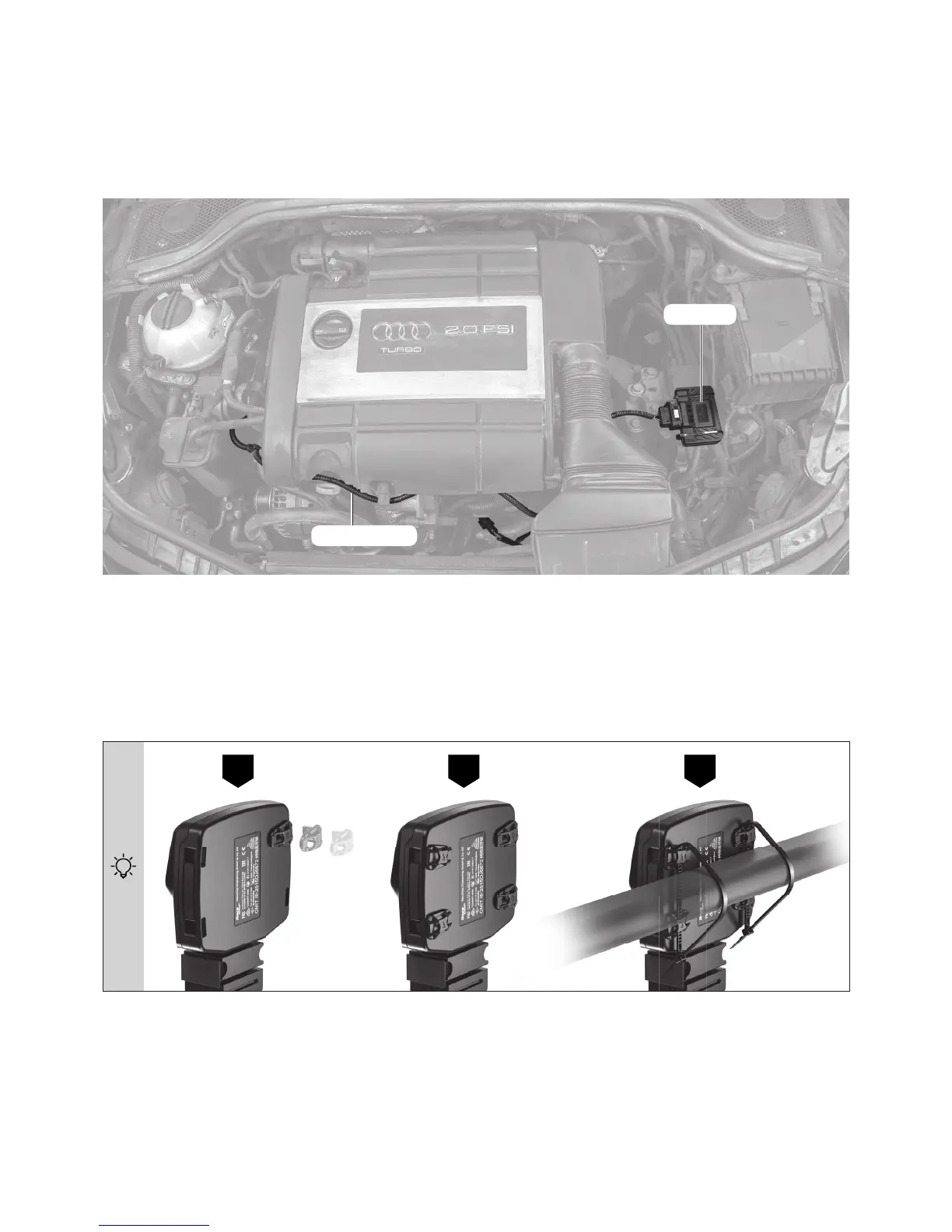 • Use the 360° xing clips included to x the RaceChip and thread the cable ties through the