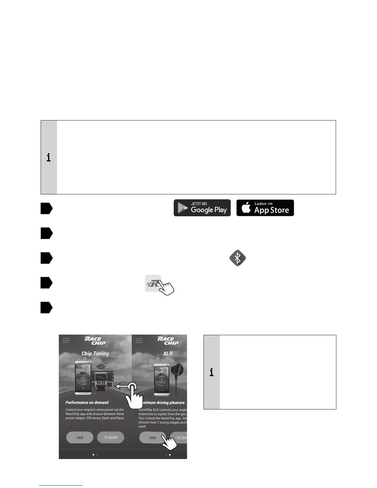 With opening the RaceChip app for the rst time, the installation dialogue for chip tuning