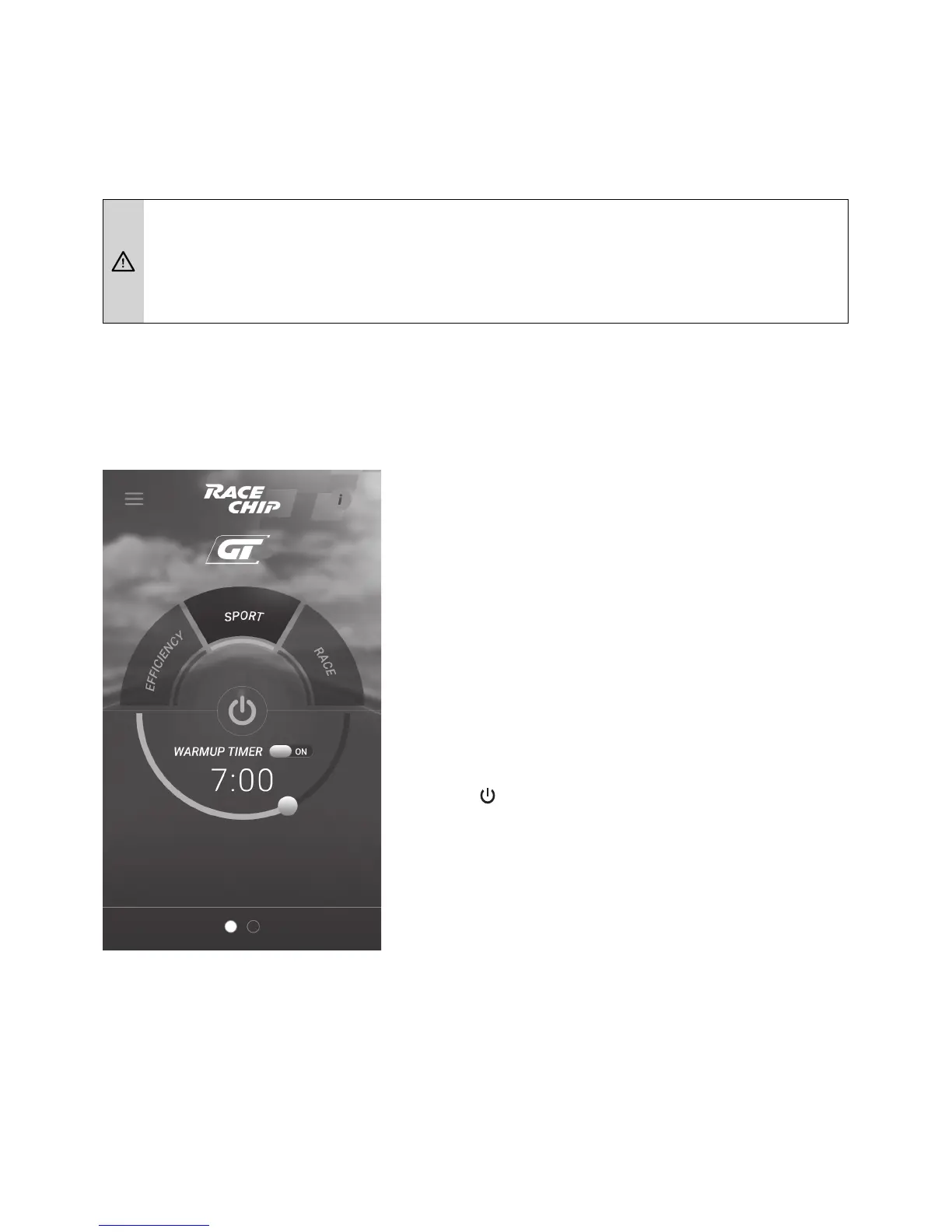 Open the RaceChip app. You can nd the tuning stages offered by your RaceChip under the