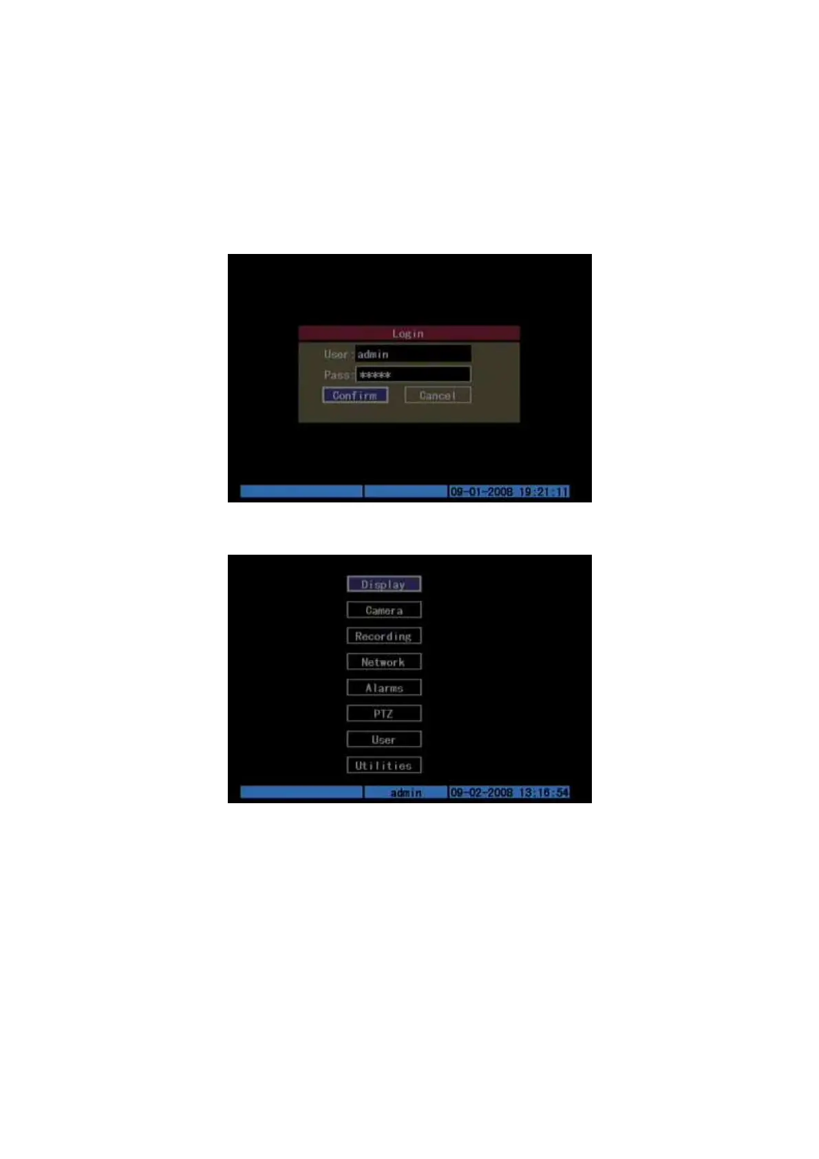 Press [MENU] key, in the login dialog, select your user name, input the correct