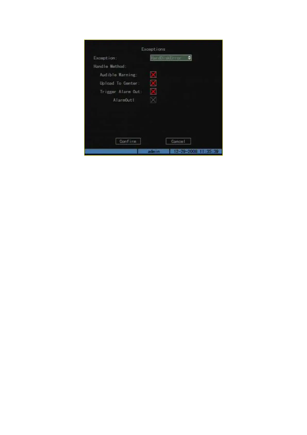 Upload to Center: Send exception information to center host PC.