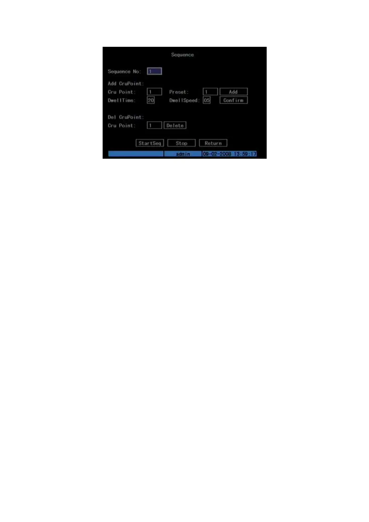 Fig. 5.33 PTZ sequence setup