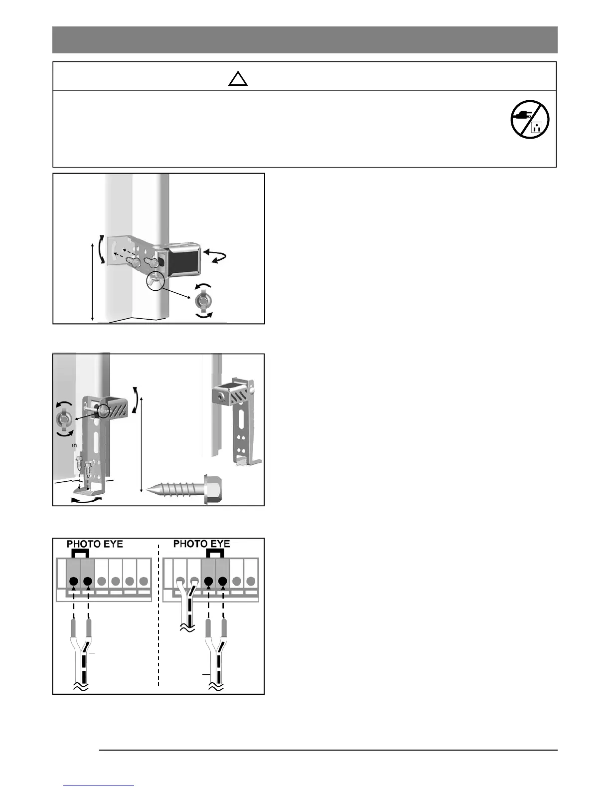 - Power MUST NOT be connected BEFORE Photo Eye Safety system is connected and aligned.