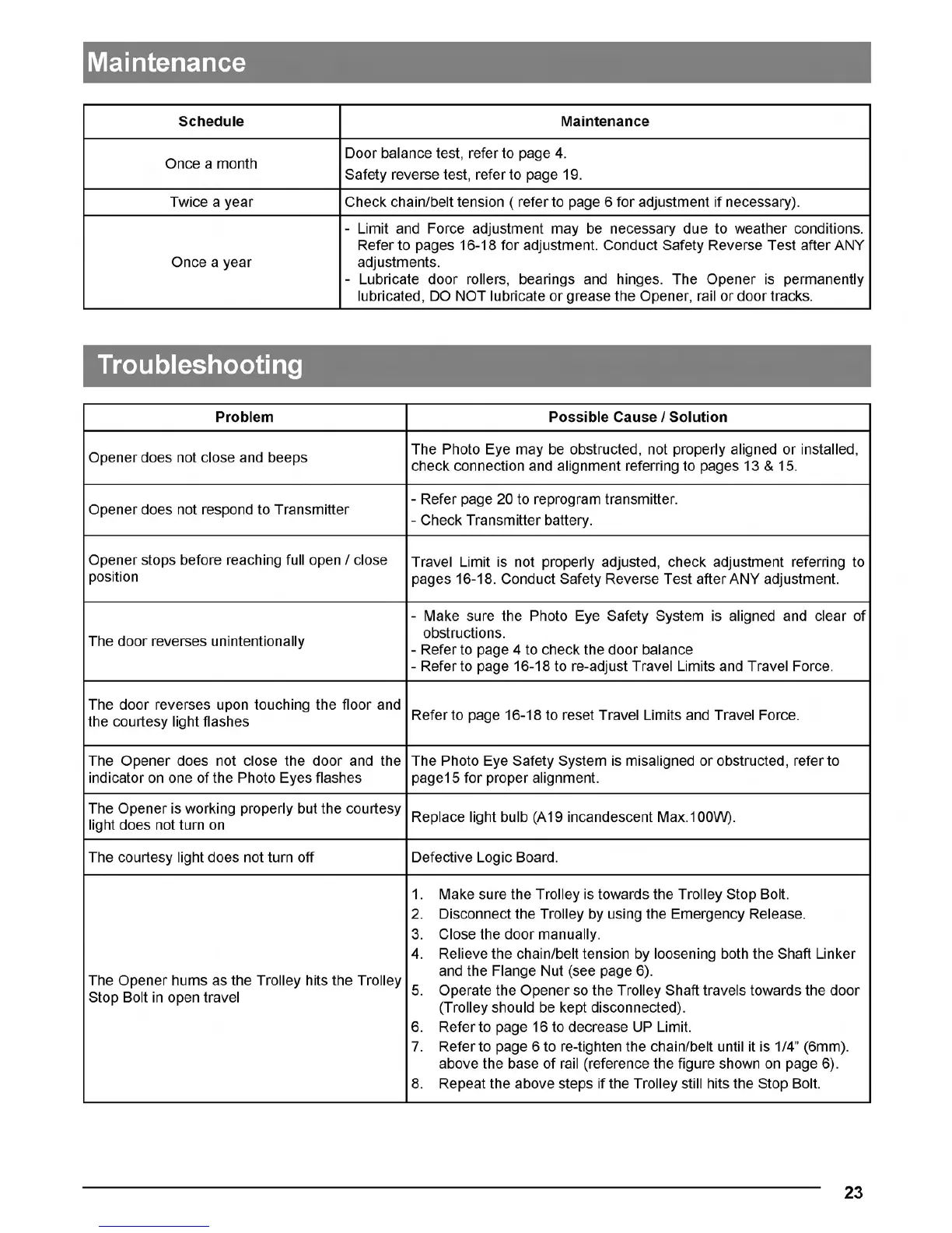 Guardian 628 - Maintenance; Maintenance Schedule; Troubleshooting; Troubleshooting Guide