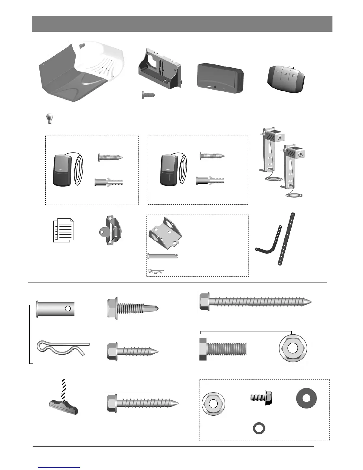 INSTALLATION HARDWARE, LOCATED IN HARDWARE BAG (SHOWN IN ACTUAL SIZE 1:1)