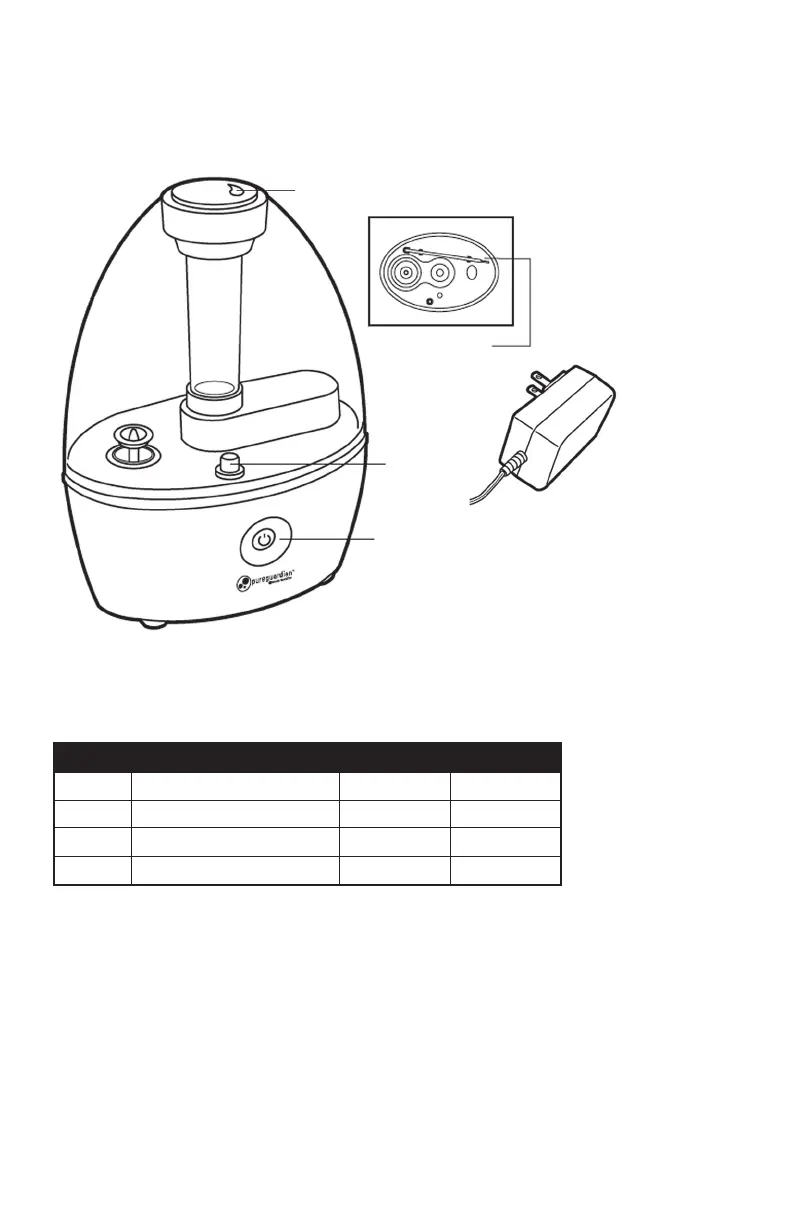 The mist control (Low or High) can be selected by pressing the power button according to the Mode Chart below.