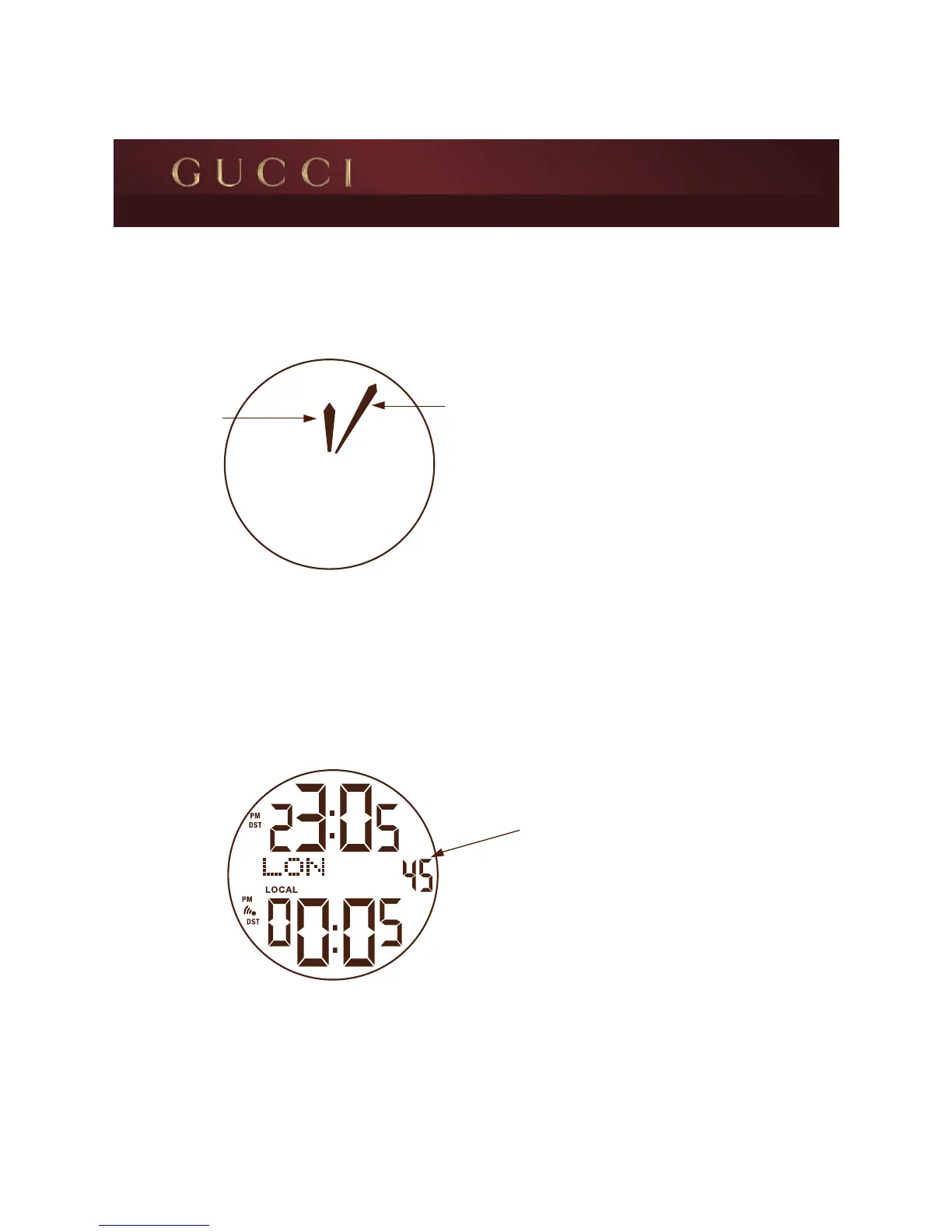 Gucci I-GUCCI - Local time display by hands; Double time zone display with second indicator