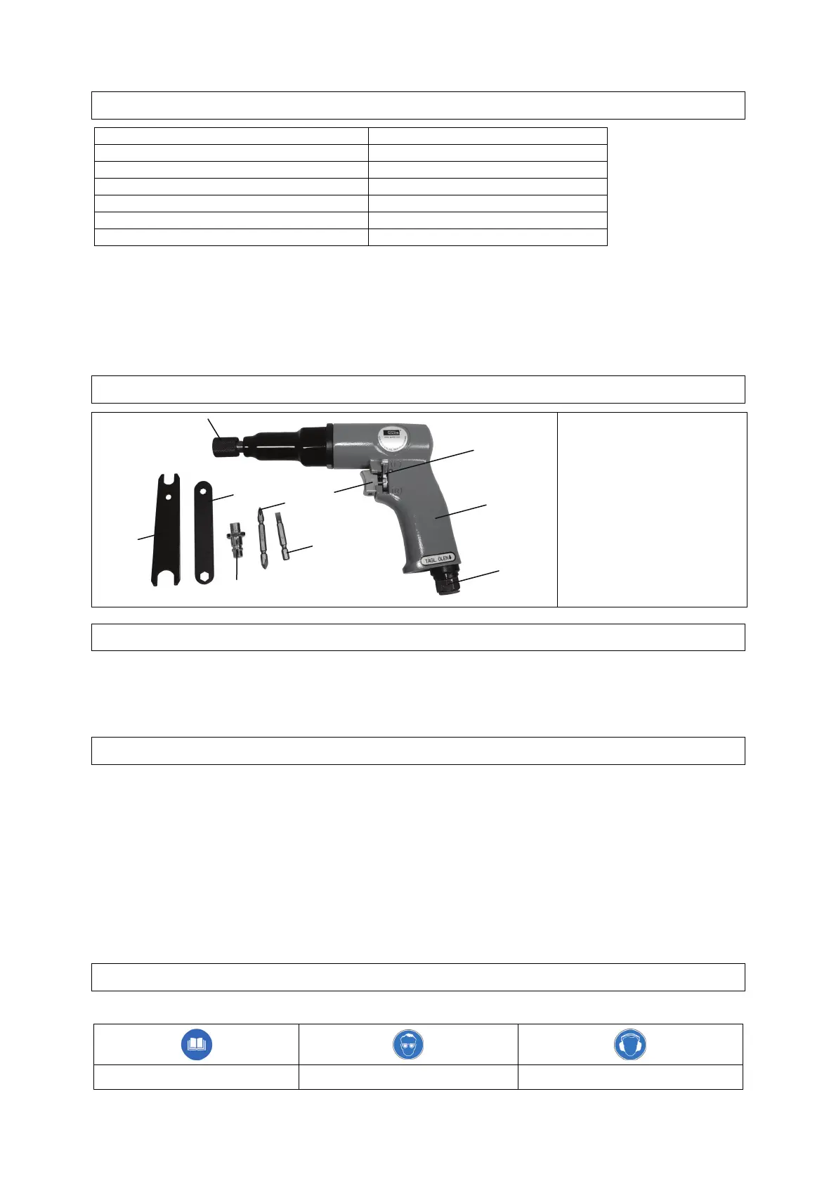 - Do not use the pneumatic screwdriver for any purpose other than assigned
