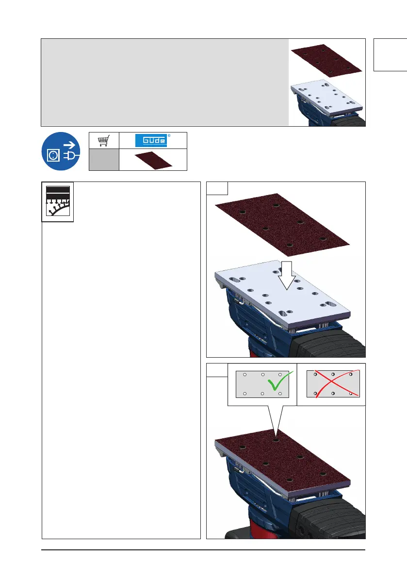 Plaats de hechtende zijde van de schuurpad voorzichtig op de