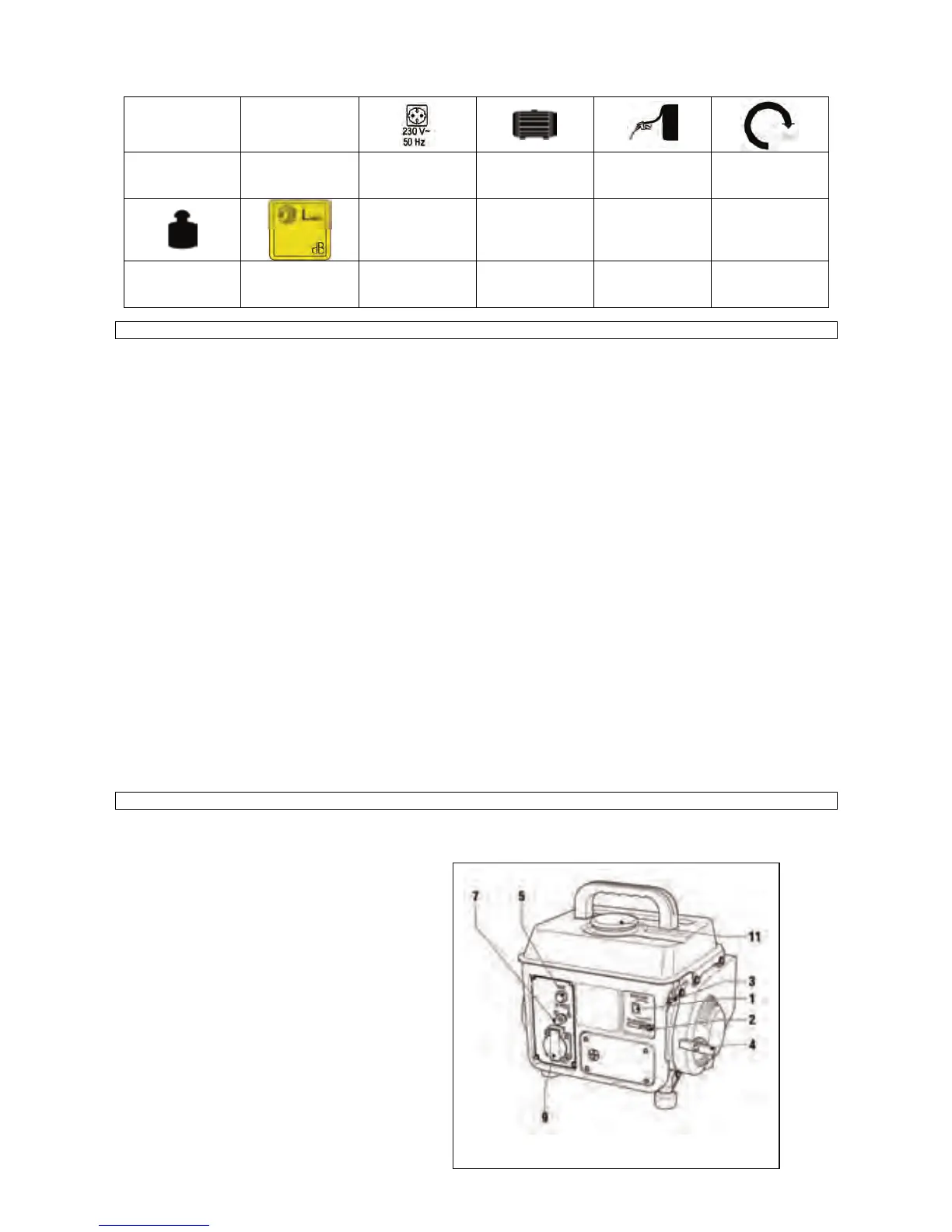 • Before use check whether the power input of the equipment to be connected is less than the maximum output ot the generator.