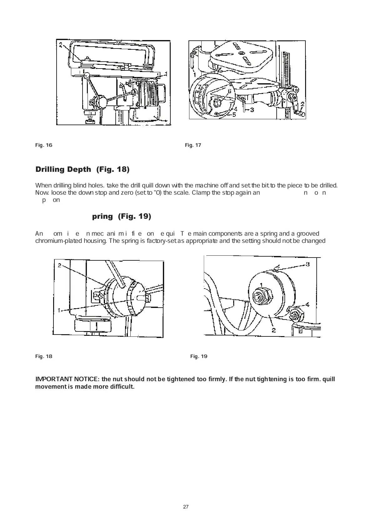 When drilling blind holes. take the drill quill down with the machine off and set the bit to the piece to be drilled.