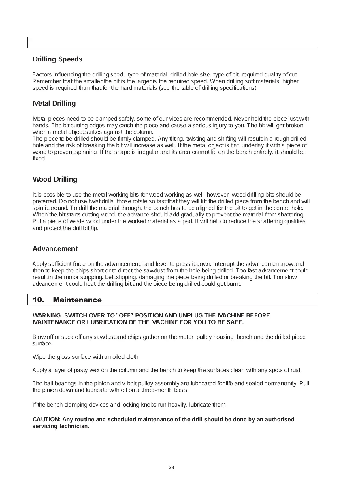 CAUTION: Any routine and scheduled maintenance of the drill should be done by an authorised