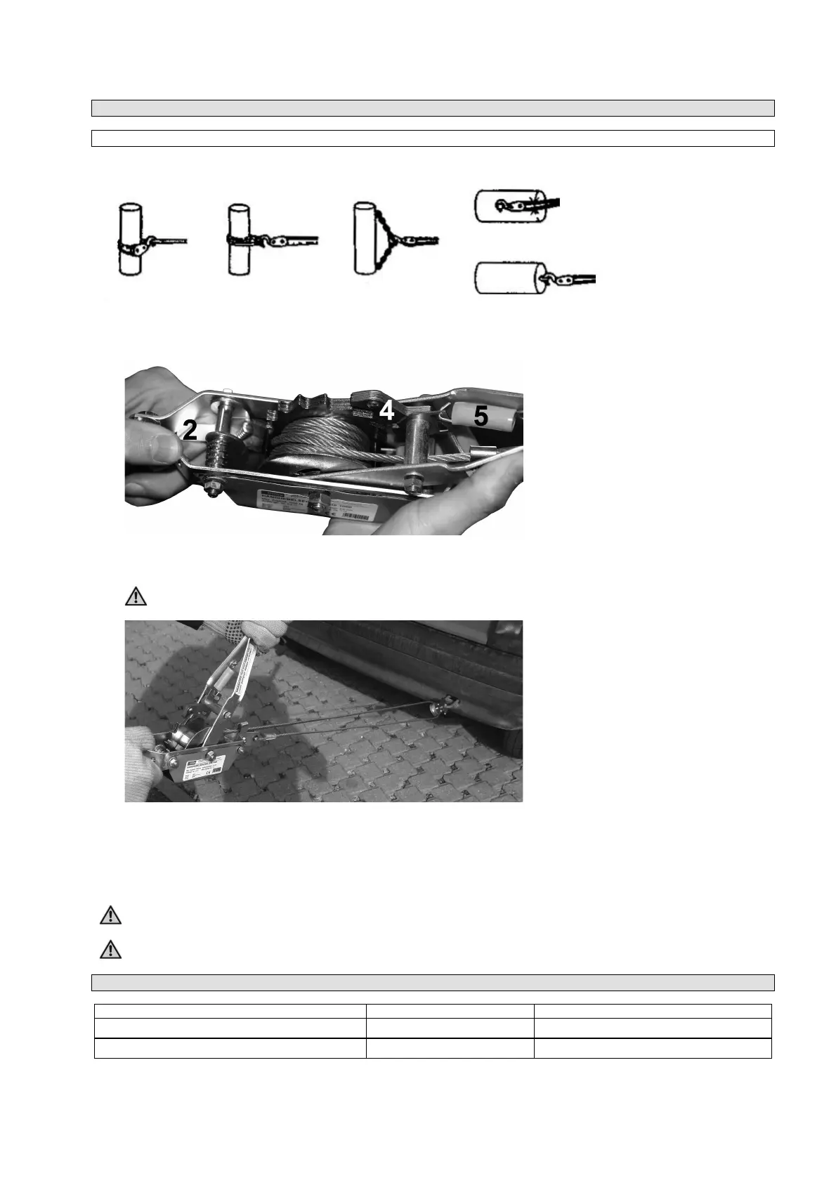 3. PĜidržíte-li aretaþní páku (2) v povolené pozici, mĤžete odvíjet lano. Aretaþní páku (2) držte stisknutou a napínací kladkostroj