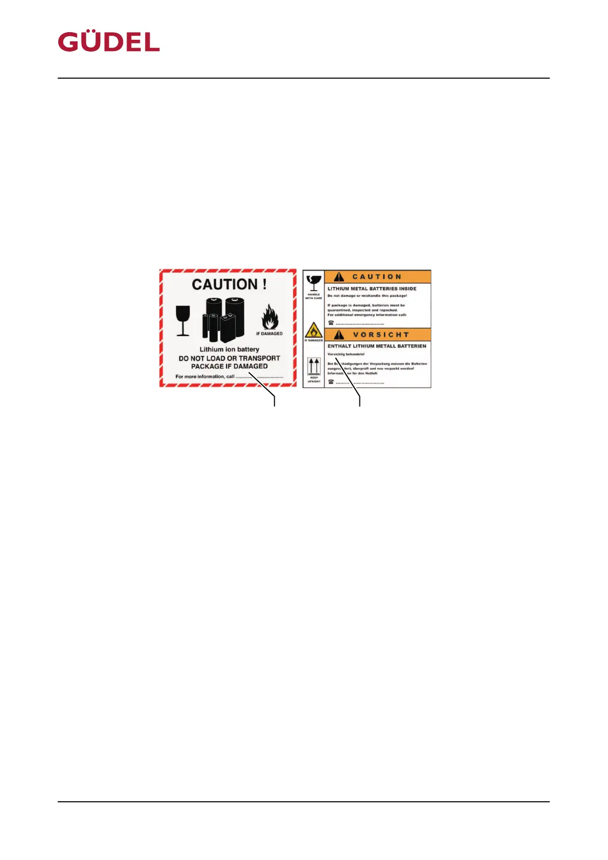 lithium batteries. Packaging units marked with one of these transport informa-