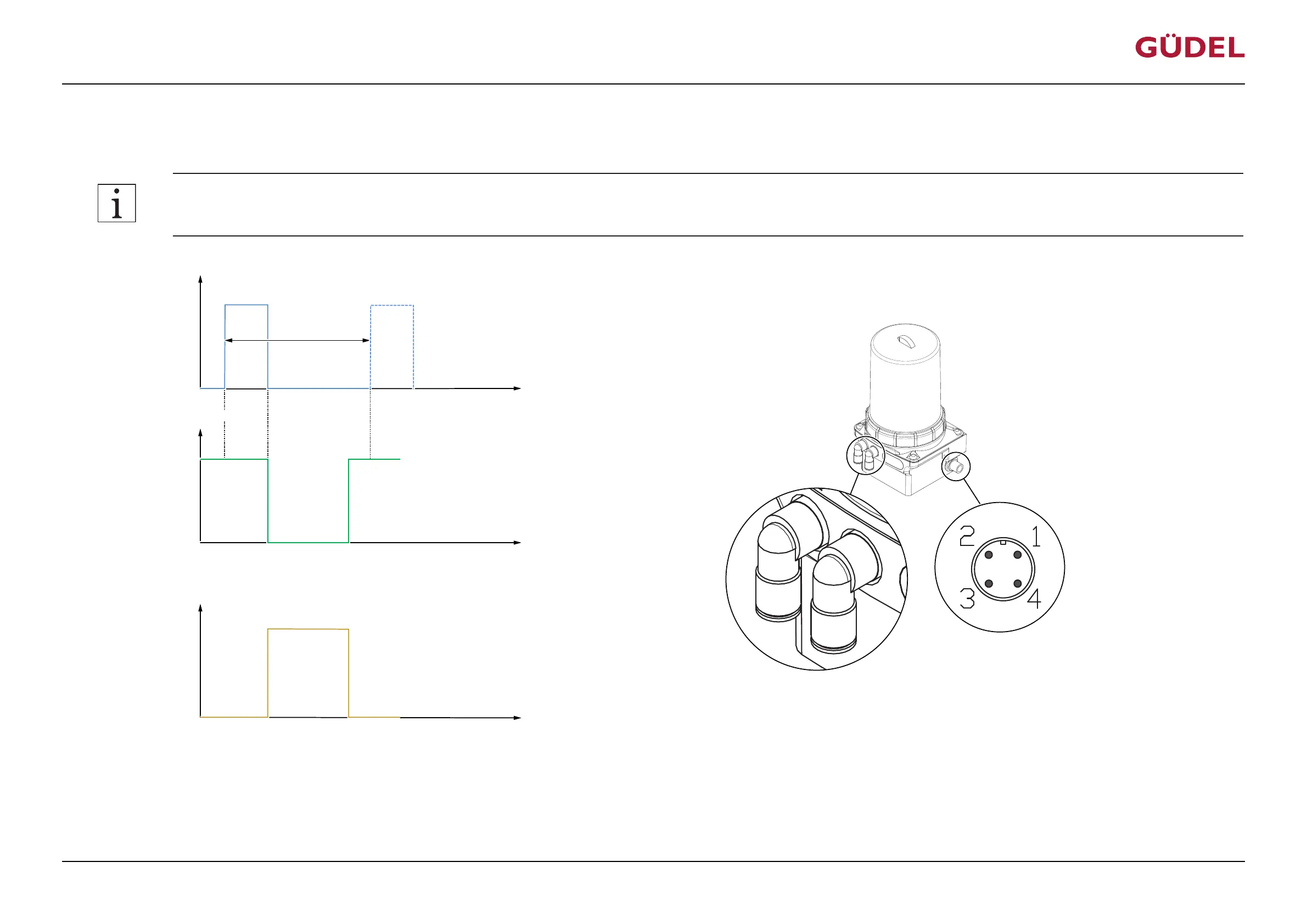 The signal indicated at PIN 2 triggers a single dose. The single dose lasts at least 22 seconds. The output signal at PIN4 in normal operation is High (+20…30V). The signal will switch to Low (+0V)