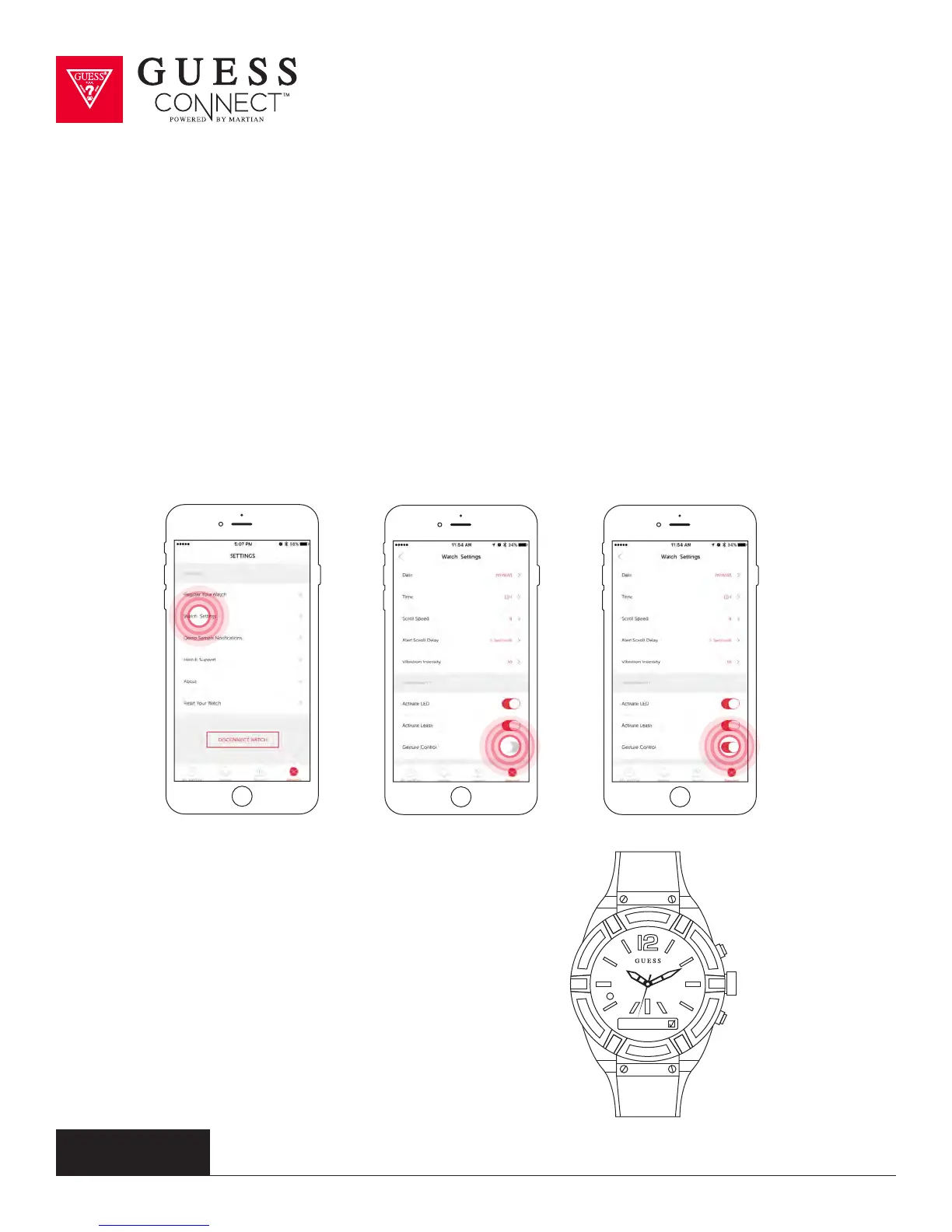A convenient feature of the GUESS Connect watch is Gesture Control. This feature allows you to