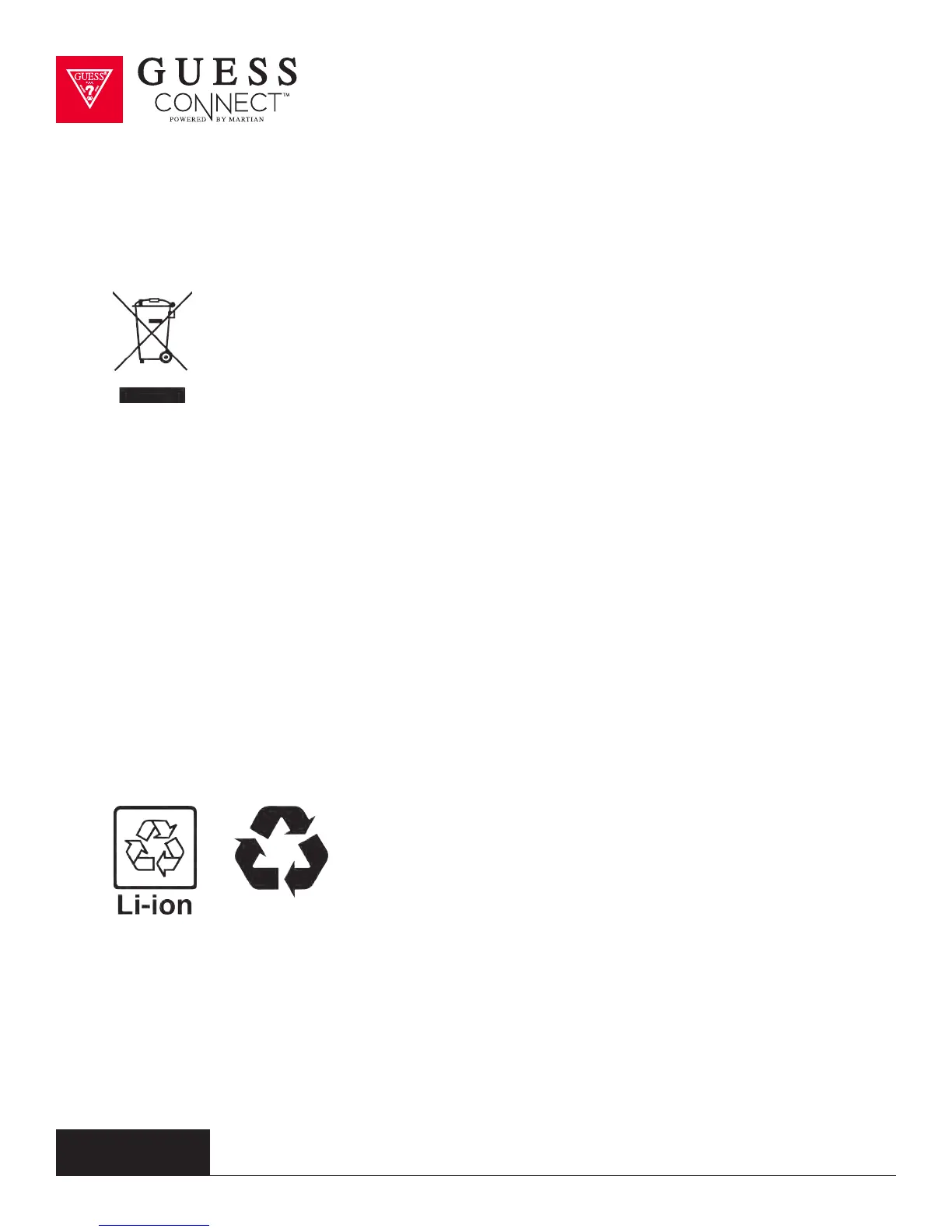 • Do not dispose of your GUESS Connect watch with household waste.