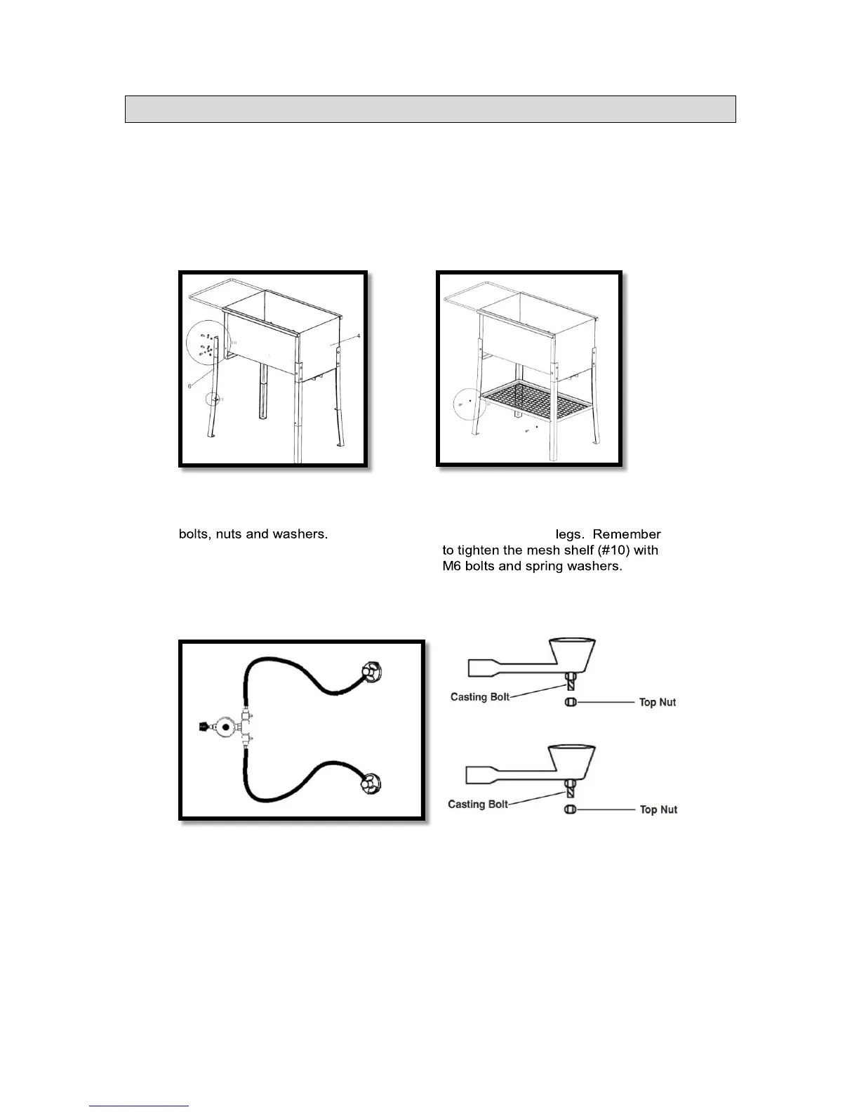 3. Screw the hose and regulator assembly (#9) onto 2 burners (#7).