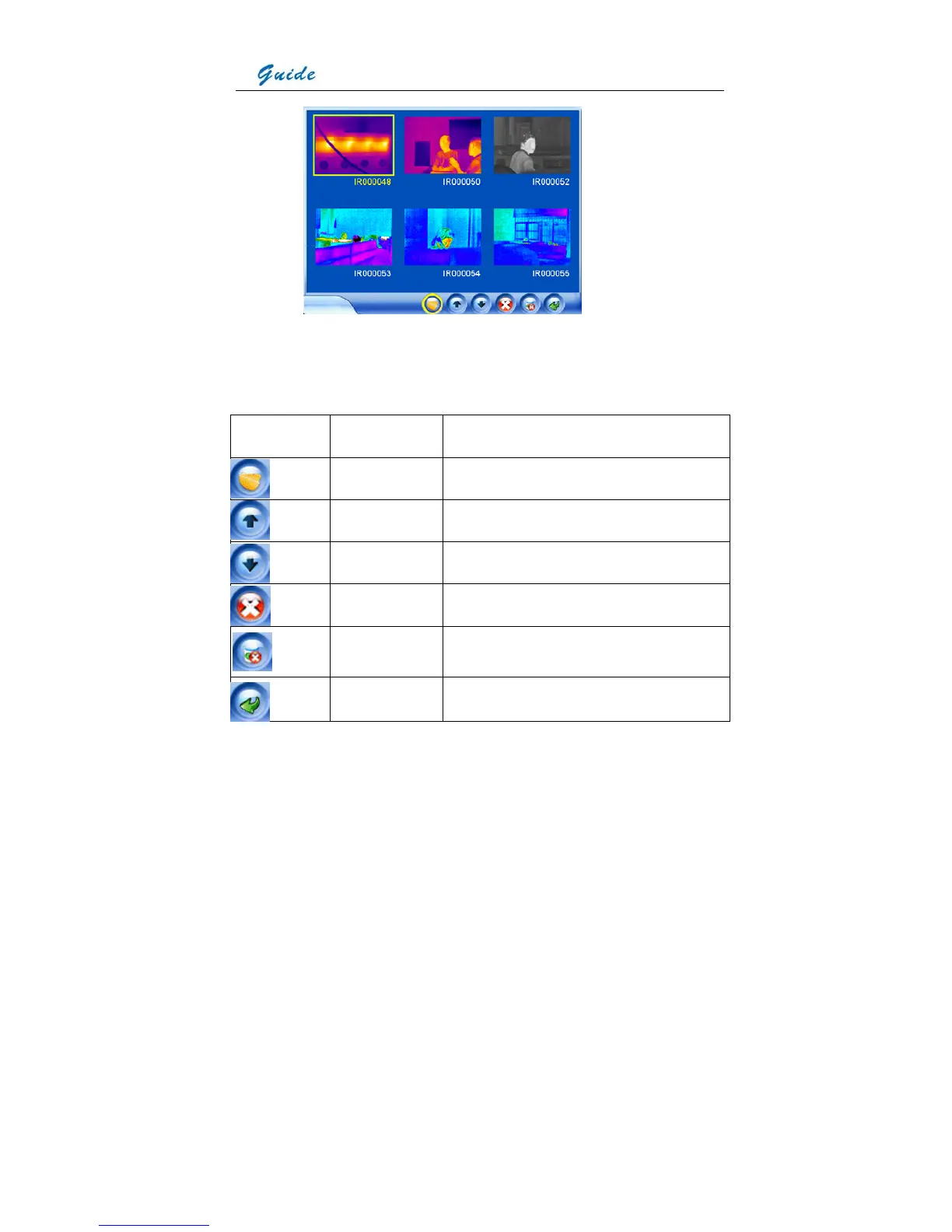 Exit command Exit the replay status and back to live thermal image