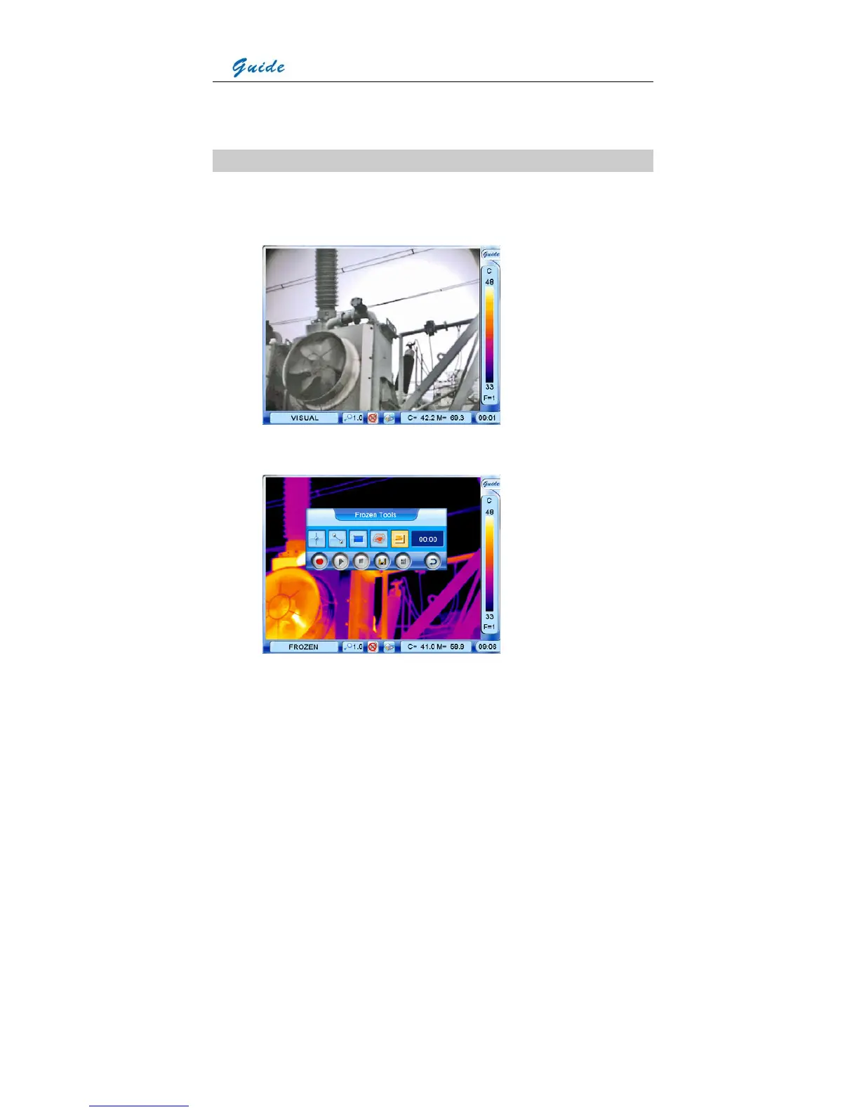 corresponding thermal image either in dynamic live status or static zoomed/frozen/ replay