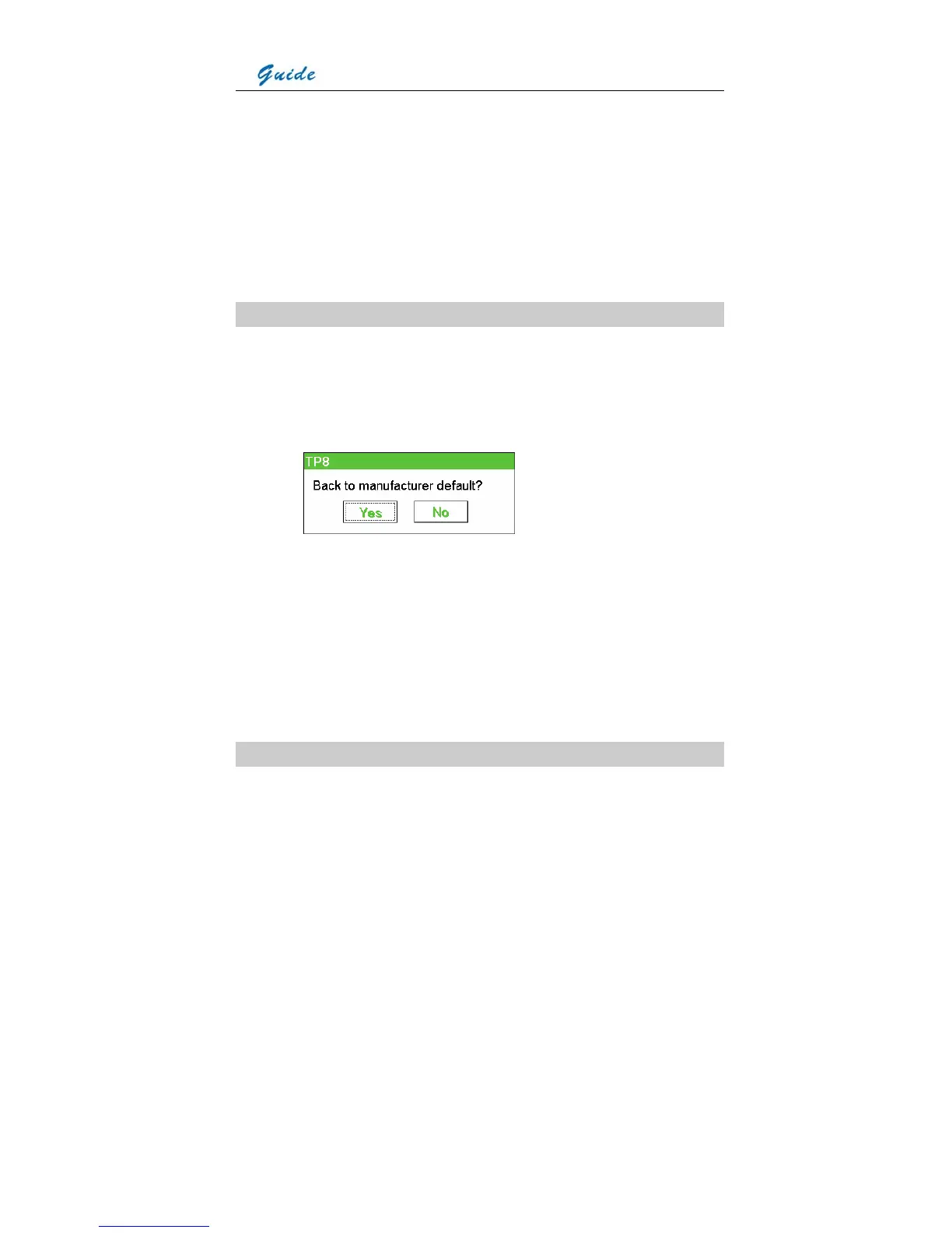 • Click option Default with the touch pen or press the joystick to select it. Then the Default